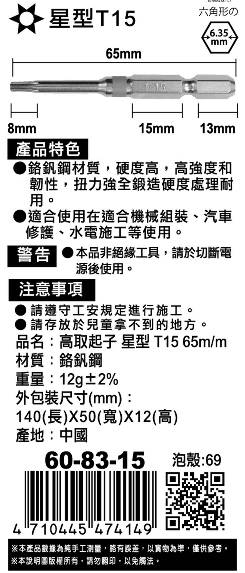 高取起子 星型 T30 65m/m