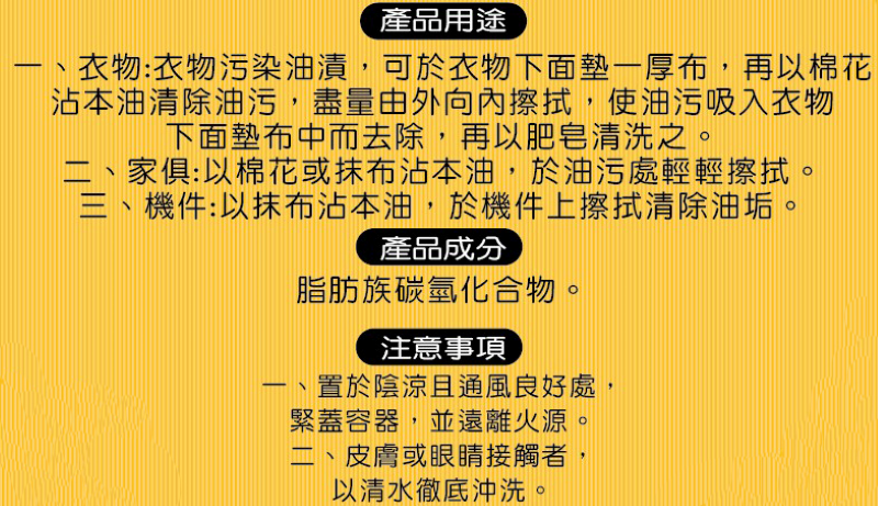 噴膠、地板腊、噴腊、壁癌類、樟腦油、清潔亮光劑、銅油、發泡劑、牛油、防銹油